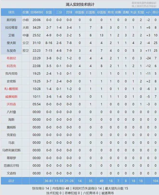 2025年10月13日 季前赛-里夫斯21分 布朗尼7分 波杰姆23+5+8 湖人轻取勇士